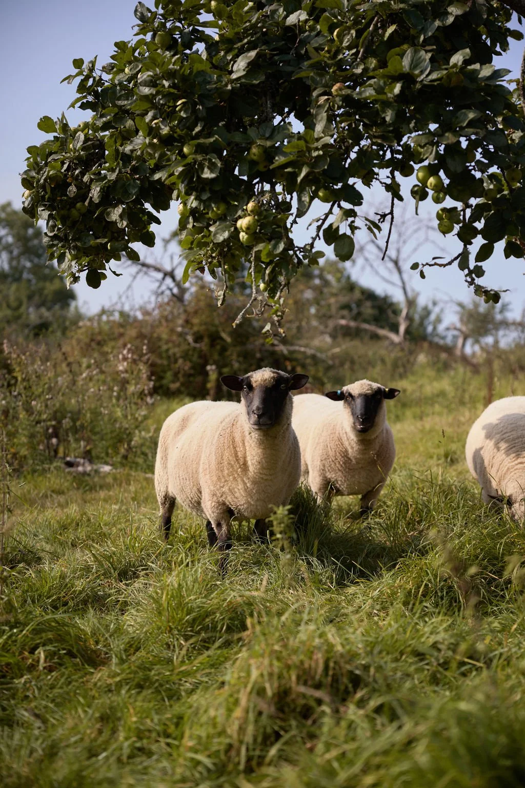 With the help of our Shropshire sheep, we collaborate with farmers across the Exe Valley in Devon to give their orchards renewed purpose. These historic spaces - often home to rare, local apple varieties - are vital to biodiversity and the preservation of traditional cider-making in England. We aim to create and maintain thriving, balanced ecosystems that support wildlife and require minimal intervention.